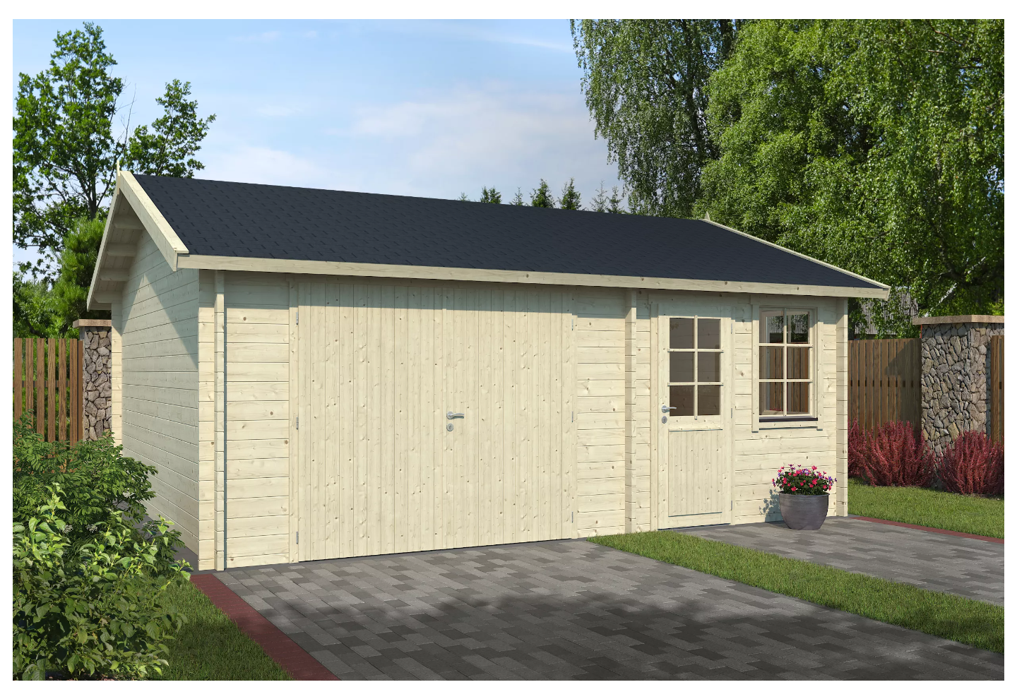 De Pelle 70 A is een solide houten garage met een robuuste uitstraling en een praktische indeling. Dit model is ontworpen voor het veilig en droog stallen van een voertuig en biedt daarnaast ruimte voor opslag van gereedschap, fietsen of tuinmaterialen. Dankzij de sterke wandopbouw heeft de garage een duurzame en stabiele constructie die geschikt is voor langdurig gebruik. Het klassieke ontwerp zorgt ervoor dat de garage goed aansluit bij verschillende woning- en tuinstijlen. Het onbehandelde hout geeft een natuurlijke uitstraling en biedt de mogelijkheid om de garage naar eigen wens af te werken of te behandelen. De Pelle 70 A is daarmee een functionele en betrouwbare oplossing voor extra ruimte in de tuin of op de oprit.