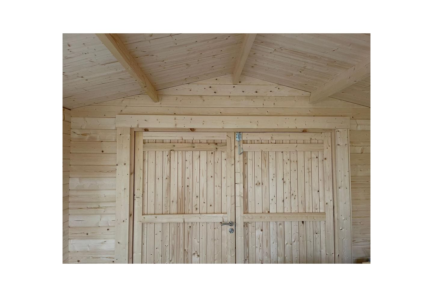 Garage Pjotr 70 B is een hoogwaardige, duurzaam gebouwde houten garage die uitblinkt in stabiliteit, isolatiewaarde en uitstraling. De garage is vervaardigd uit 70 mm dikke massieve Scandinavische sparrenstammen, wat zorgt voor een zeer solide constructie en een lange levensduur. Hierdoor is dit model uitermate geschikt voor intensief gebruik en jaarrond toepassing.