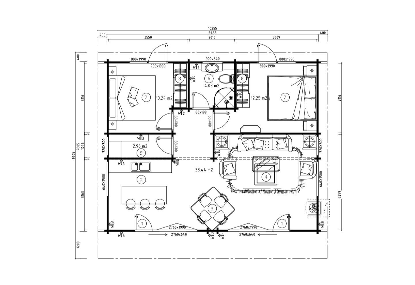 De De Hoeve Houten Vakantiehuis Viken 70 | 1026cm x 920cm is een ruime houten vakantie- of woonruimte met multifunctionele indeling en een schuindak, uitgevoerd met grote ramen en deuren die zorgen voor lichtinval en een open gevoel. Dit model biedt dankzij de massieve 70 mm wanddikte een robuuste constructie met uitstekende duurzaamheid en stabiliteit. De indeling bevat meerdere kamers waardoor het ideaal is voor gebruik als vakantiehuis, kantoor, atelier of extra leefruimte in de tuin. De hoogwaardige deuren en ramen dragen bij aan comfort en functionaliteit gedurende het hele jaar.