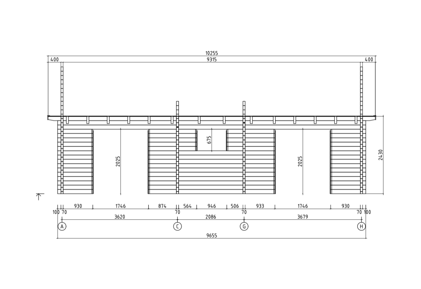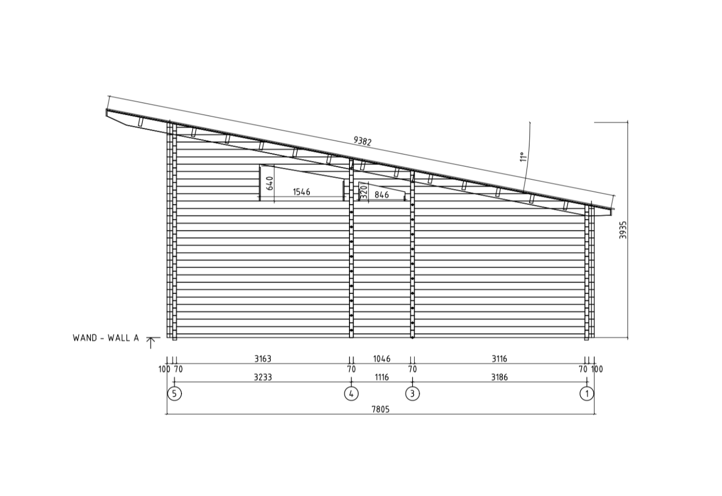 - Afmeting: 1026cm x 920cm inclusief dakoverstek (zie technische tekening)