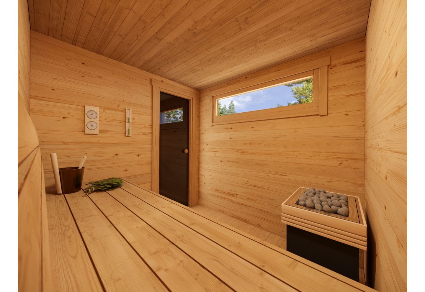 - Binnenruimte: comfortabele sauna met efficiënte indeling
