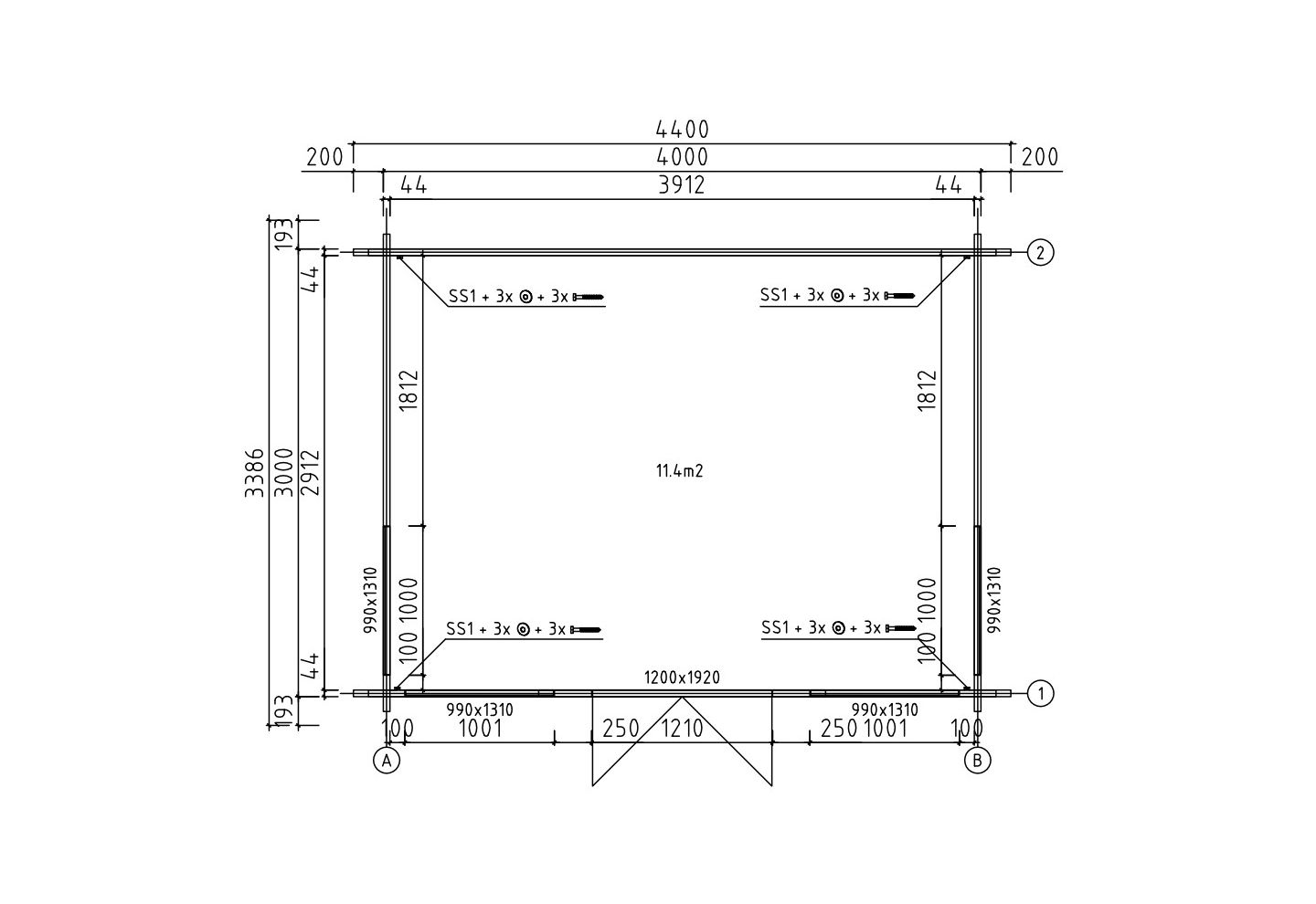 - Afmeting: ca. 4,4 x 3,4 m