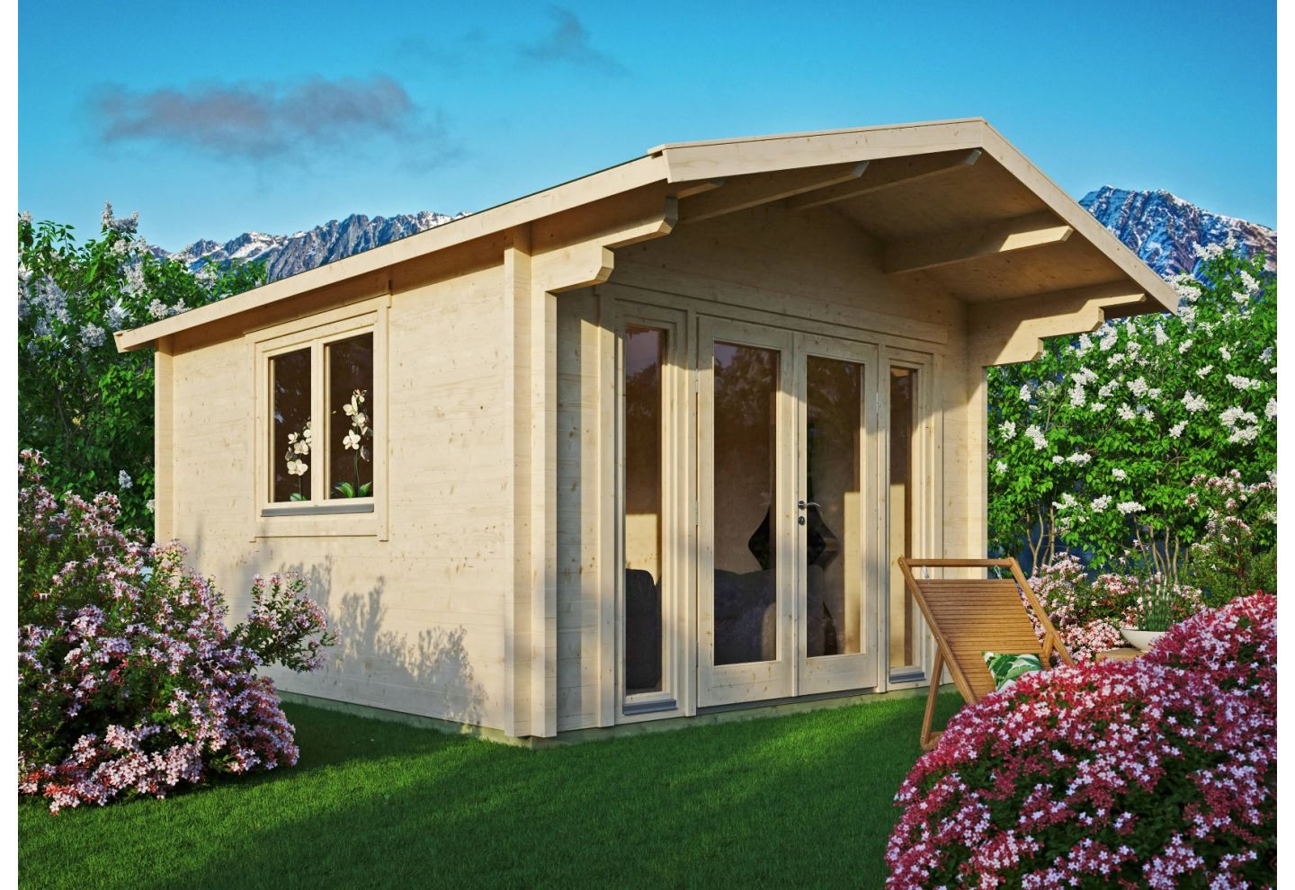 Het tuinhuis Urk 70 C is een stijlvolle en functionele toevoeging voor je tuin. Met een ruime binnenruimte van circa 14 m² biedt dit model voldoende plek voor het opbergen van tuinmeubelen, gereedschap of het creëren van een hobbyruimte. De constructie is opgebouwd uit een robuust 70 mm logprofiel wat zorgt voor stabiliteit en duurzaamheid. Dankzij het klassieke zadeldak en de grote dubbele deur met ramen krijgt het geheel een aantrekkelijke uitstraling die past bij diverse tuinstijlen. De ramen zijn voorzien van dubbelglas, wat bijdraagt aan lichtinval en isolatie. Dit tuinhuis komt onbehandeld, zodat je het zelf kunt afwerken en afstemmen op jouw wensen en de stijl van je tuin. Het stevige houten tuinhuis is ontworpen om lang mee te gaan en kan optioneel uitgebreid worden met extra accessoires zoals dakbedekking of isolatie. Laat je inspireren door de mogelijkheden en maak van Urk 70 C jouw ideale buitenruimte.