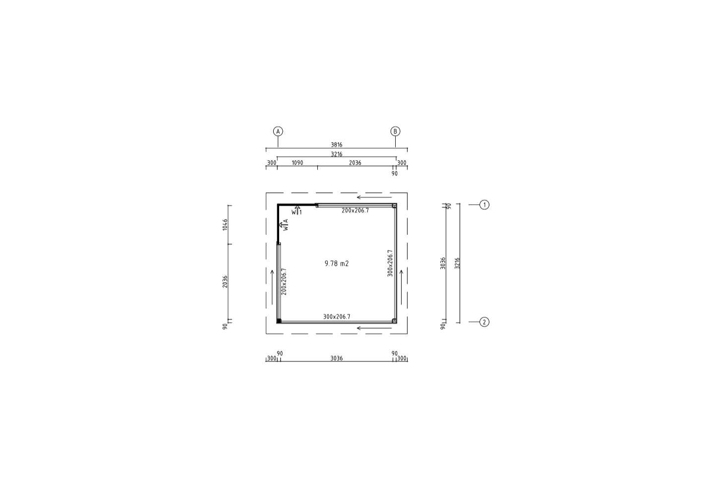 - Afmeting: ca. 432 x 432 cm inclusief dak overstek (zie technische tekening)