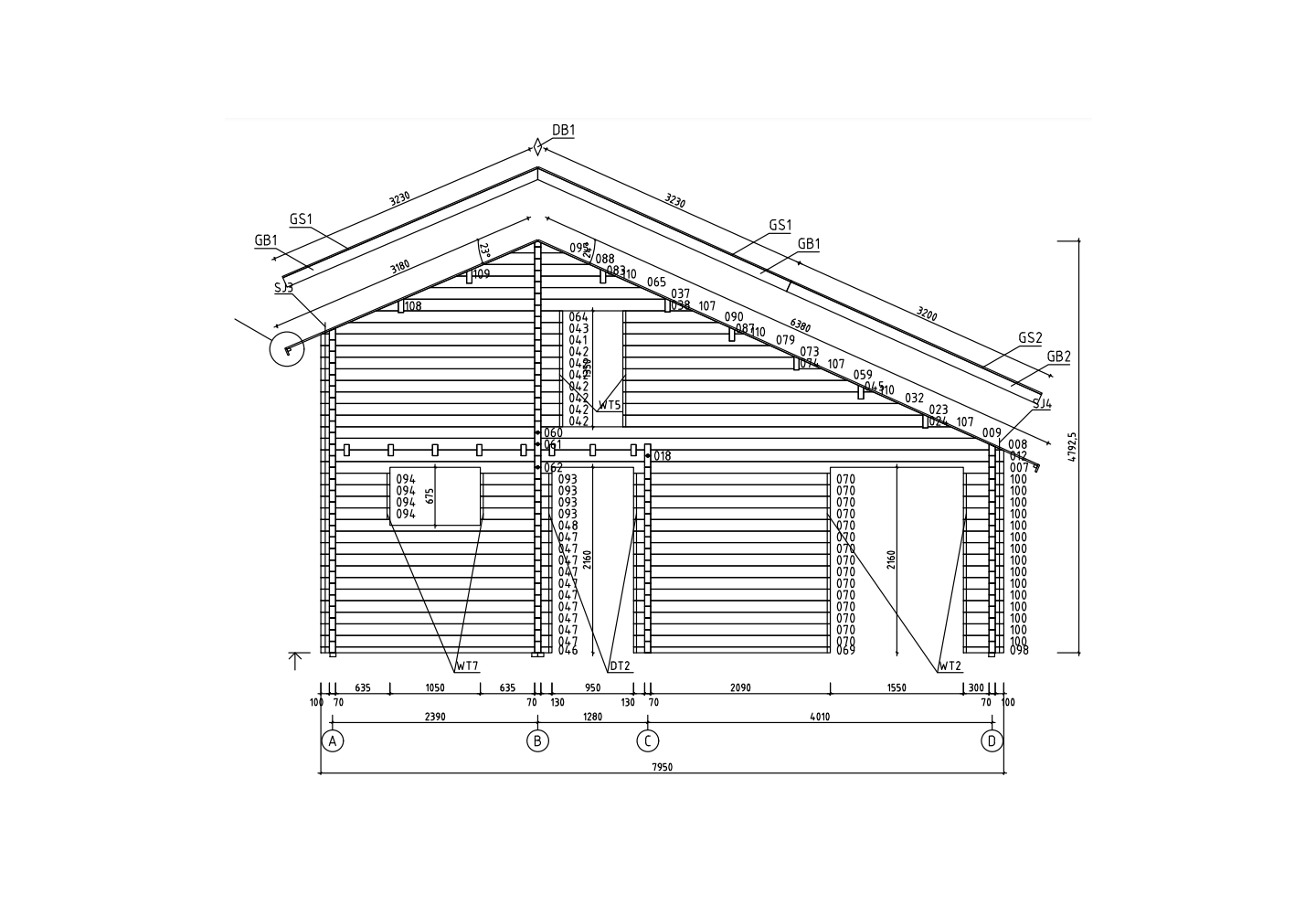 - Log profiel: 70 mm wanddikte