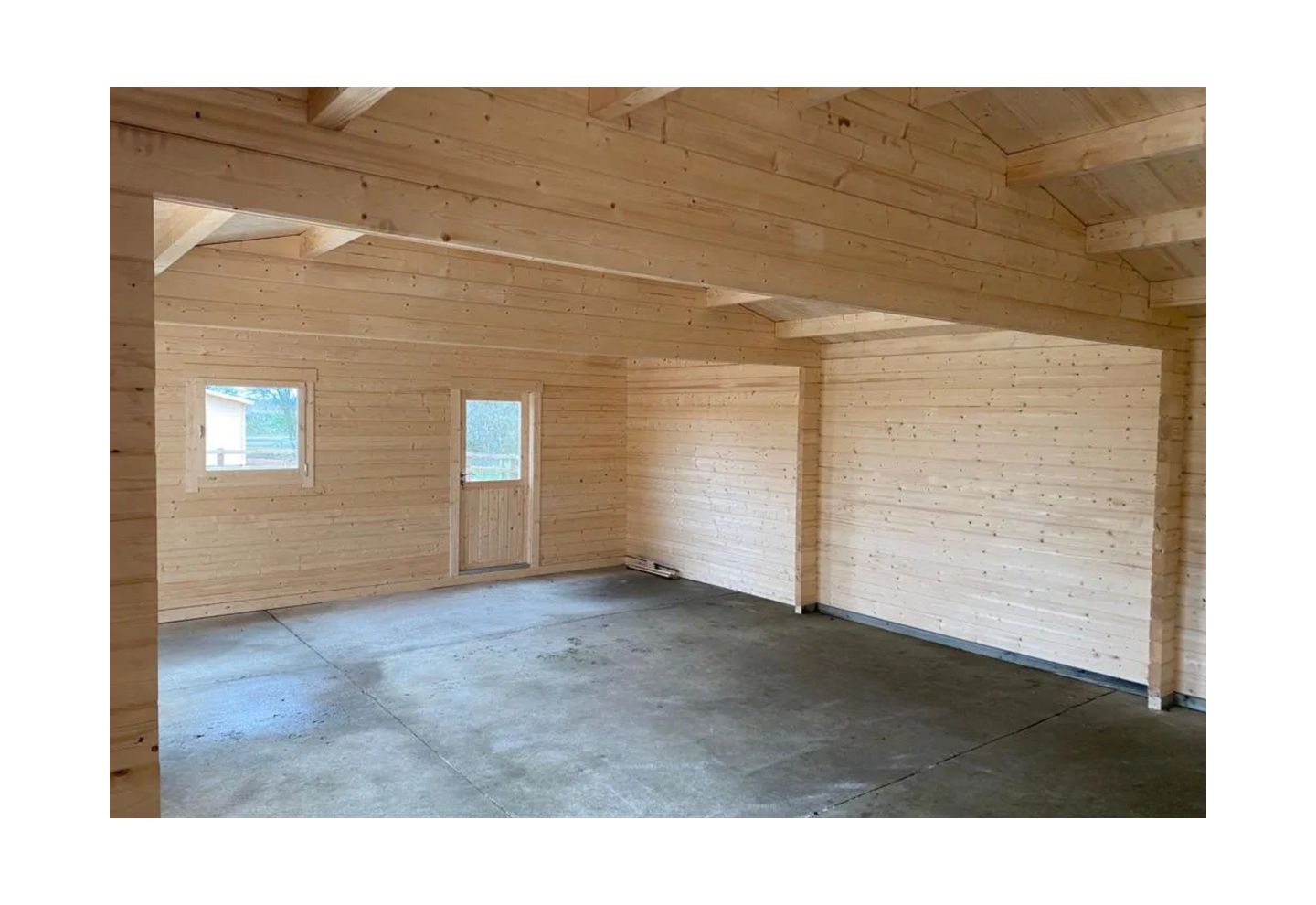 De De Hoeve Garage Rotterdam 70mm | 940x640cm is een royale houten garage met een solide en robuuste uitstraling. Dankzij de 70 mm dikke logwanden beschikt deze garage over een zeer sterke en stabiele constructie, geschikt voor het veilig stallen van voertuigen of het creëren van extra opslag- en werkruimte. Het ruime vloeroppervlak biedt volop gebruiksmogelijkheden, terwijl de degelijke opbouw zorgt voor een lange levensduur. Door het tijdloze ontwerp past deze garage zowel in een moderne als landelijke omgeving en is hij breed inzetbaar voor particulier gebruik.