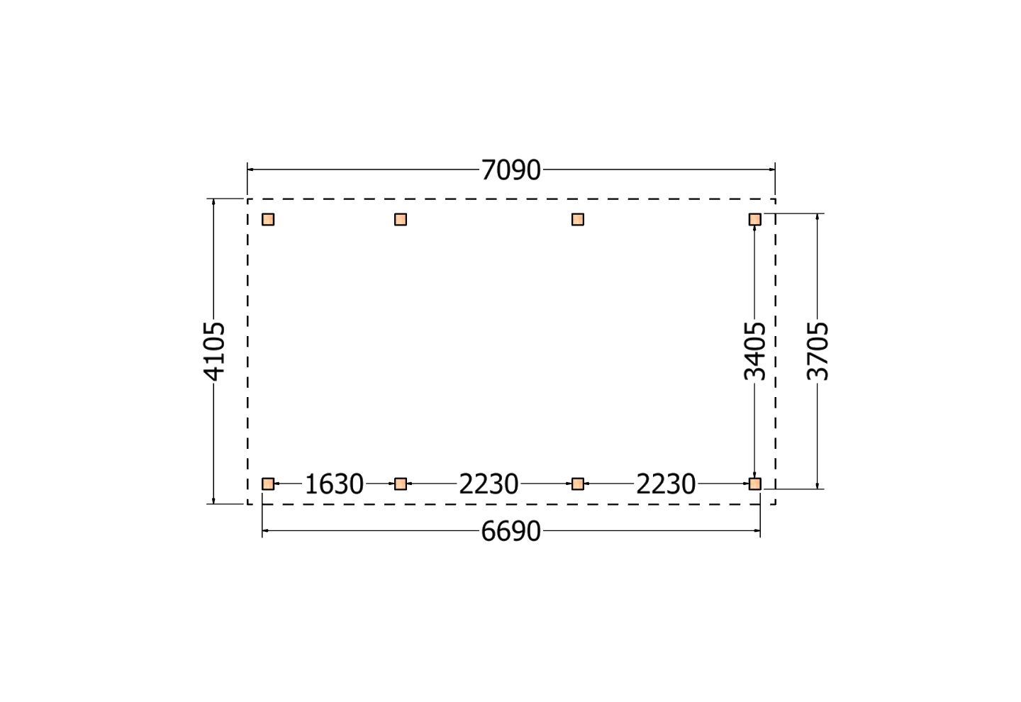 ?Bij dit tuinhuis is het mogelijk om te kiezen voor een fundering welke bestaat uit betonpoeren. Onder de vrijstaande paal van de overkapping kan een betonpoer geplaatst worden, deze steekt vaak 7 cm boven het maaiveld uit. Wij adviseren bij het gebruikt van deze fundering om eerst de gehele fundering te plaatsen en achteraf de bestrating aan te leggen rondom/in het tuinhuis.