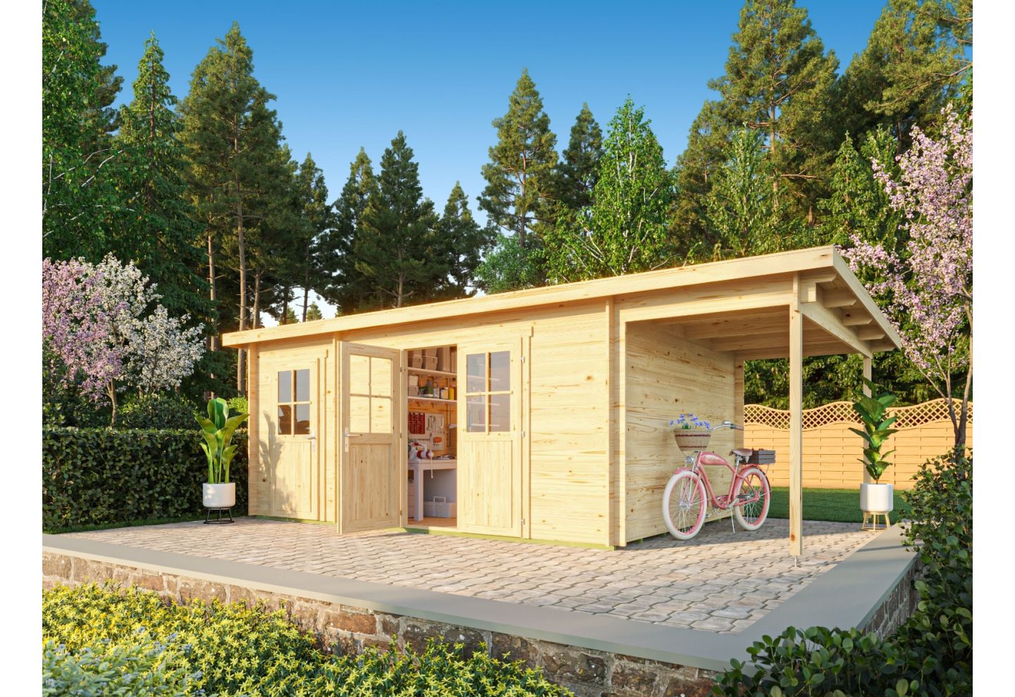 ? De houten vloer die de Hoeve Buitenleven aanbiedt bestaat uit 18mm dikke planken. Bevestigingmaterialen en geimpregneerde tussenliggers worden hier bij geleverd. Met de aanleg van een houten beschermt u het tuinhuis of de blokhut tegen optrekkend vocht, waardoor de spullen in het tuinhuis mooi blijven. De houten binnen vloer is voor het tuinhuis of blokhut gedeelte. U heeft de keuze uit een onbehandelde vloer of een hogedruk geïmpregneerde ondervloer