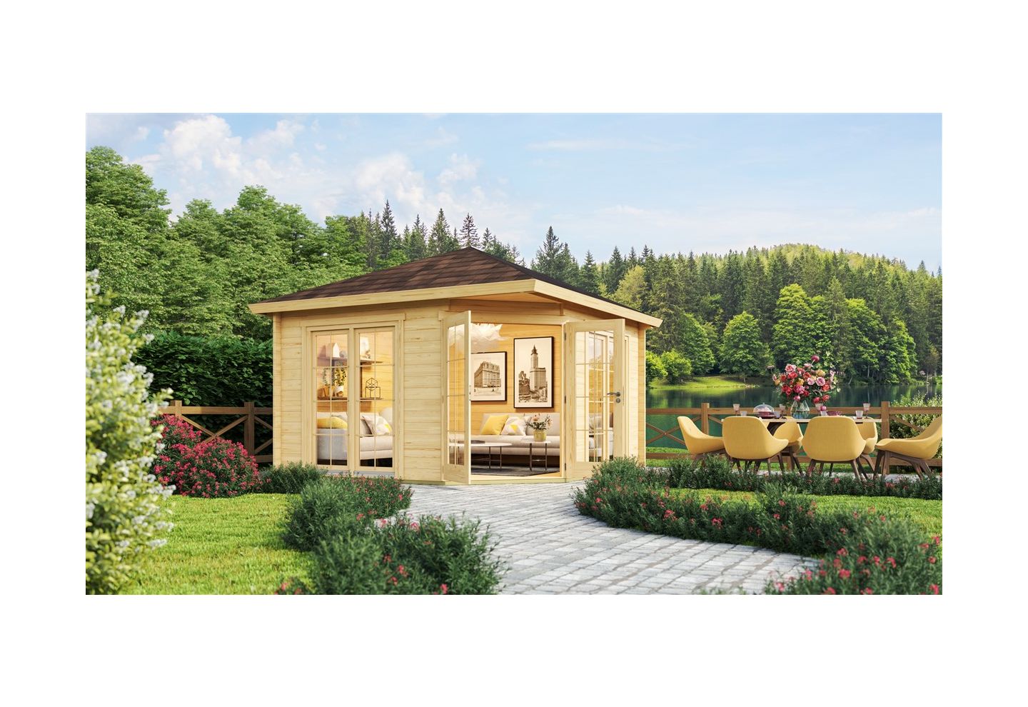 Vijfhoekstuingebouw FARGO 70 B geeft de klassieke tuinkamer een wat moderne en praktische twist en onderscheidt zich meteen van conventionele 4-hoekschuren. Als u uw nieuwe tuingebouw een speciaal tintje wilt geven, dan is dit het misschien!