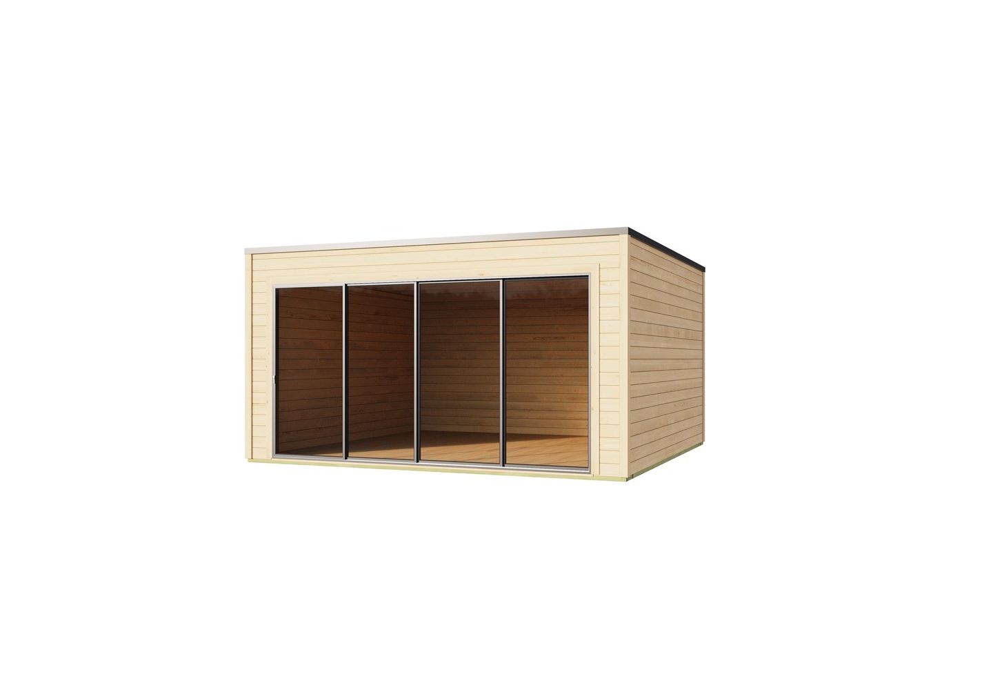 Deze compacte blokhut kan worden gebruikt als tuinkamer, kantoor, klaslokaal, vergaderruimte, grote eetkamer of vele andere doeleinden.