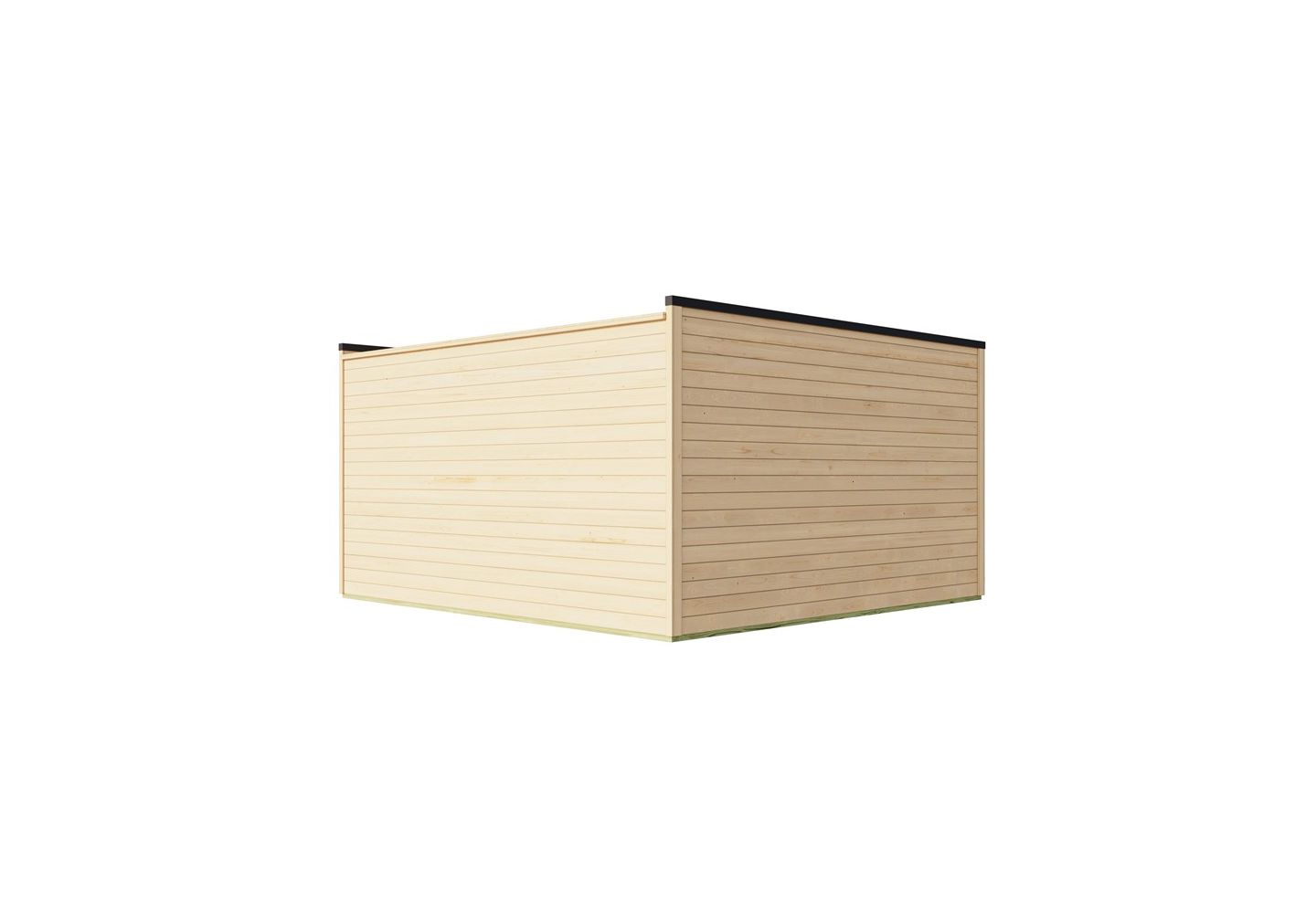 Massief houten dak gemaakt van 18 mm dikke tand- en groefplaten